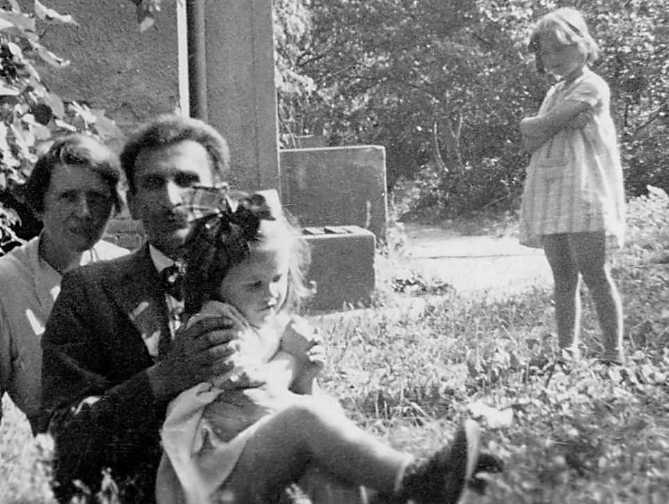 s. 67 – Jan i Antonina Spychalscy z Agnieszką, w głębi Róża, w ogrodzie, 1938
